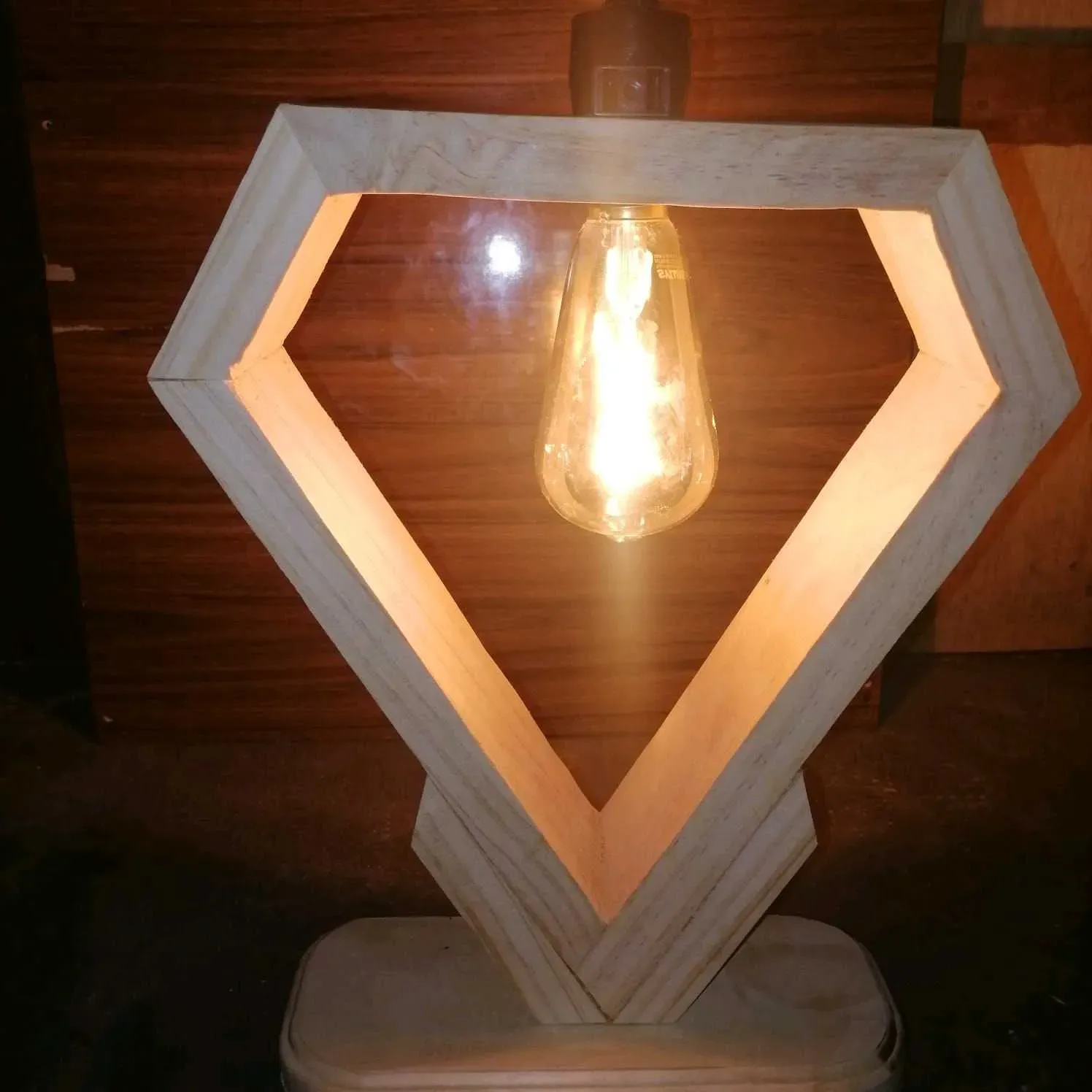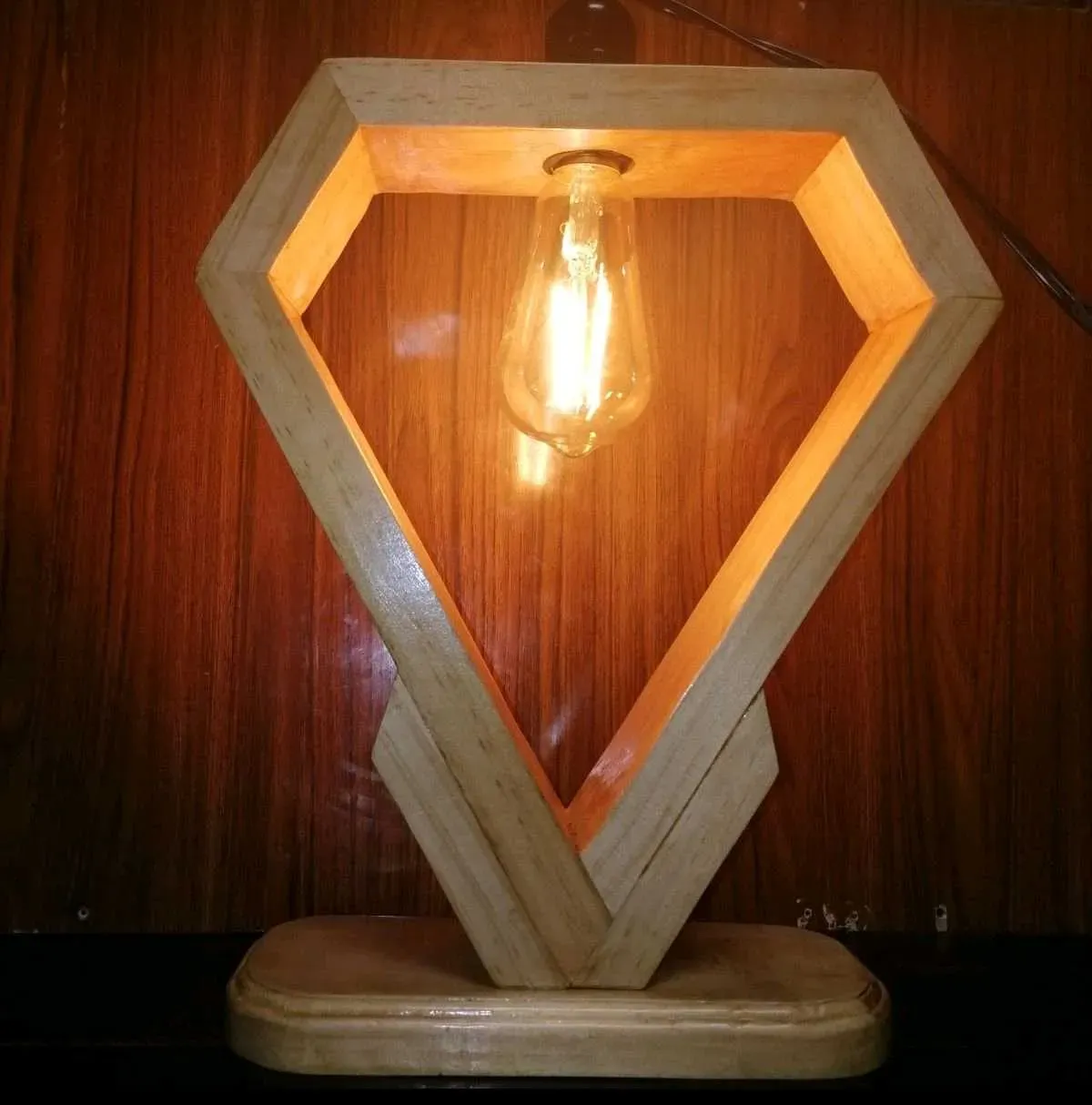 Ilumina tu espacio con estilo! ✨ Esta lámpara de madera artesanal es la pieza perfecta para añadir un toque de calidez y originalidad a cualquier rincón. Su diseño único y la luz cálida de la bombilla Edison crean una atmósfera acogedora y moderna.